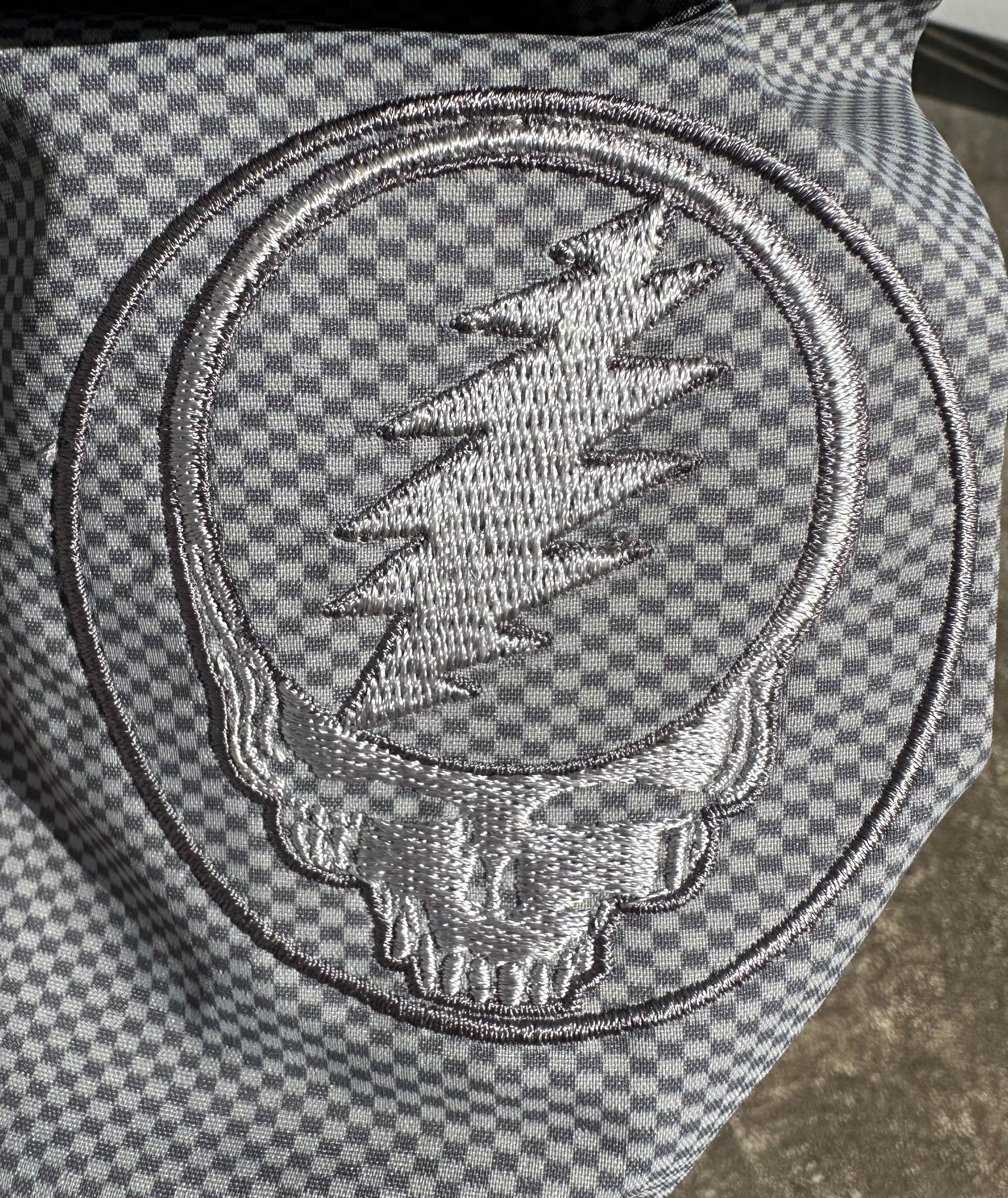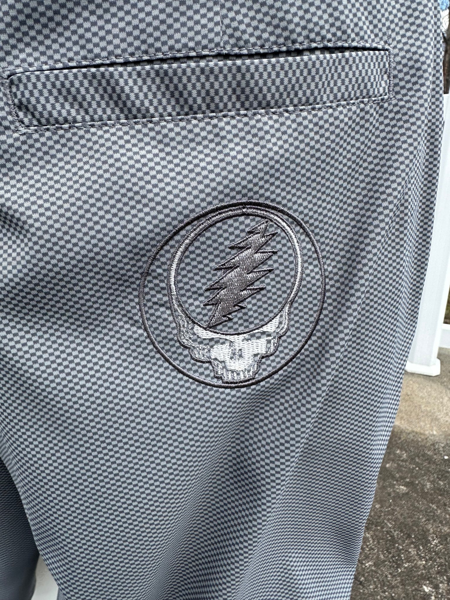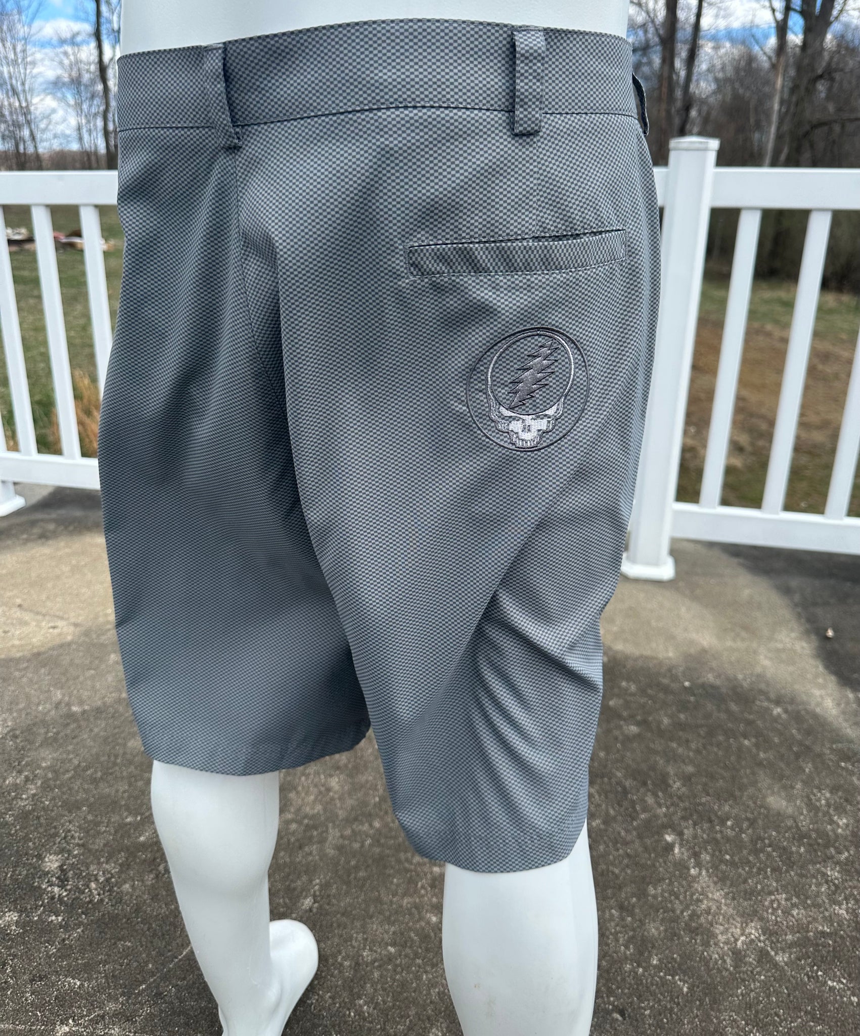 Sz 42 PGA Pro golf shorts with custom embroidery. These shorts feel so nice and have a cool pattern. Embroidered silver and grey stealies one is on the front left leg and the other is on the back pocket. These shorts have inseam pockets and two back pockets. 9” inseam One of a kind