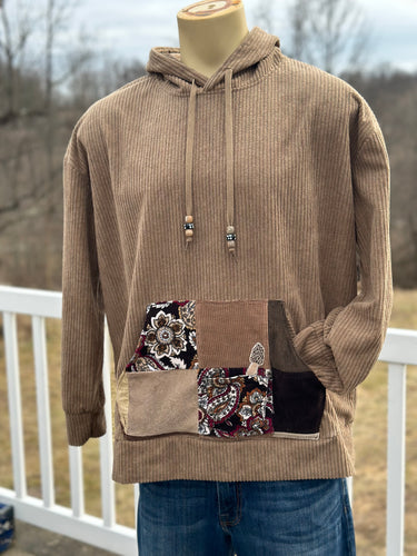 Women’s size M black corduroy button up jacket with custom tie dye appliqués.