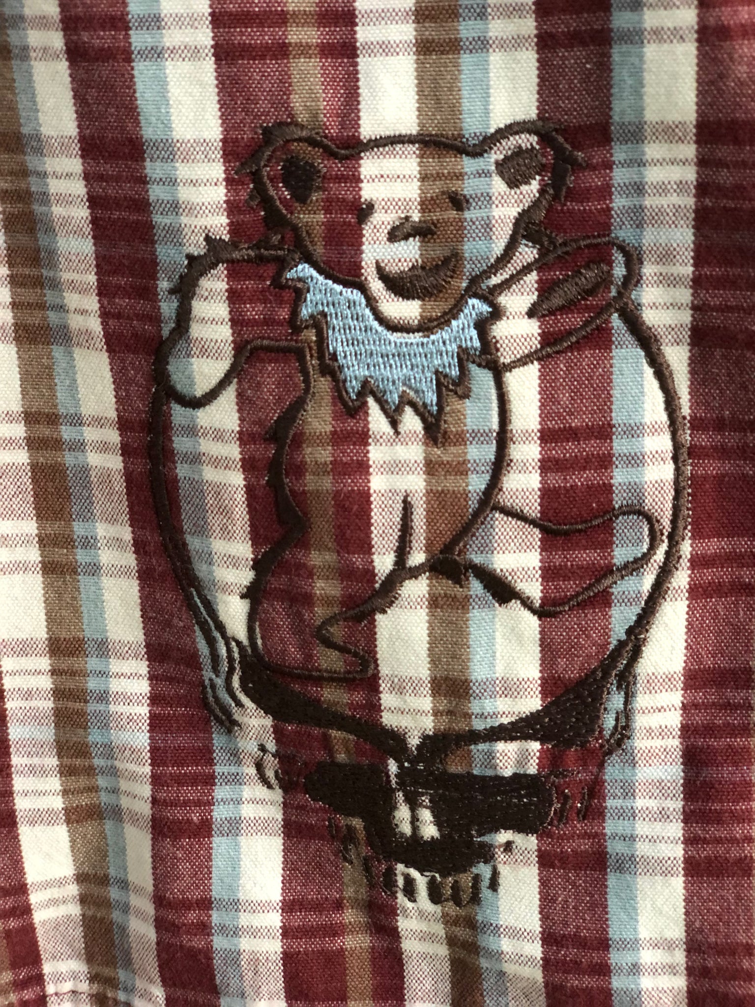 Steal Your Bear embroidered on the front and a bolt on the back. Side pockets and back pocket with Velcro enclosure.